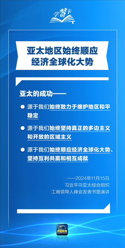 習近平指出,過去30年,亞太地區(qū)經濟保持了強勁增長,創(chuàng)造了舉世矚目的“亞太奇跡”。如何推動構建亞太命運共同體,打造亞太發(fā)展的下一個“黃金三十年”?習主席強調了一個關鍵詞:經濟全球化。一起學習↓