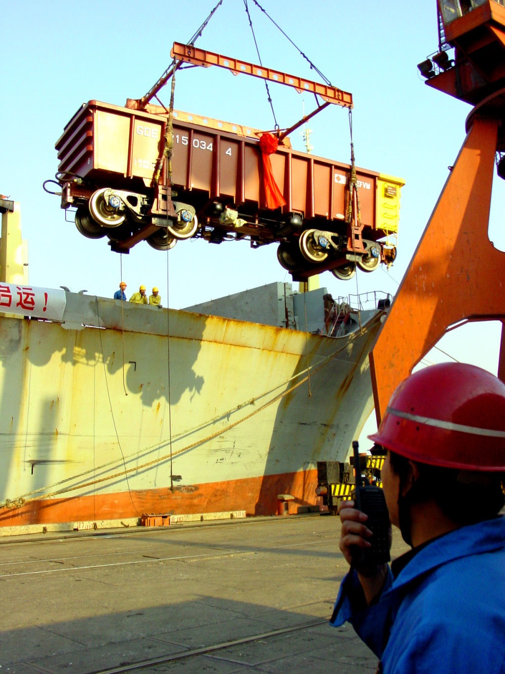 2003年10月23日,中國(guó)向巴西出口的首批鐵路貨車(chē)從上海張華浜港啟運(yùn)。這是中國(guó)首次向南美出口鐵路貨車(chē)。