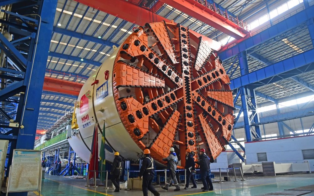 這是在遼寧沈陽(yáng)北方重工集團(tuán)拍攝的即將出口到巴西圣保羅的盾構(gòu)機(jī)(2016年1月28日攝)。