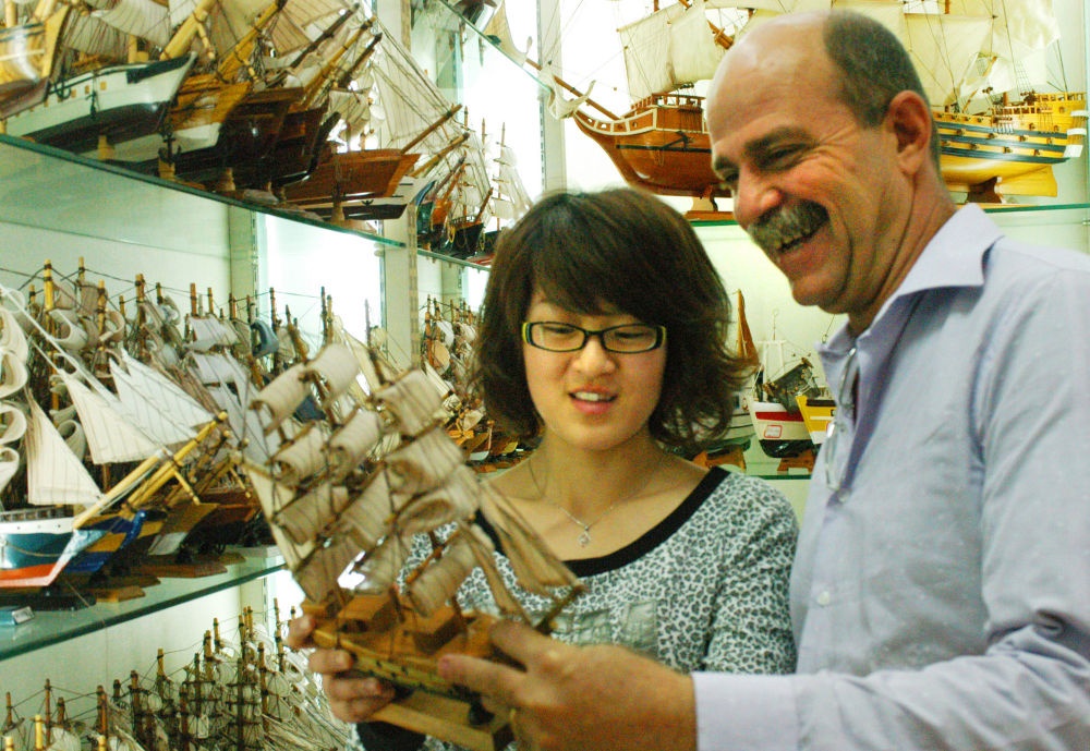 2009年3月31日,一名巴西客商在浙江義烏國(guó)際商貿(mào)城采購(gòu)工藝帆船。