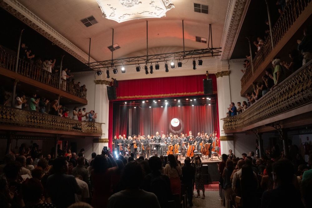 2024年6月3日,在巴西北里奧格蘭德州納塔爾舉行的“慶祝中國(guó)巴西建交50周年——巴西東北部中巴音樂(lè)巡演(納塔爾場(chǎng))”音樂(lè)會(huì)上,觀眾起身為表演者鼓掌。本場(chǎng)音樂(lè)會(huì)上,中國(guó)和巴西經(jīng)典樂(lè)曲相互穿插,讓觀眾贊嘆于兩國(guó)音樂(lè)之美。