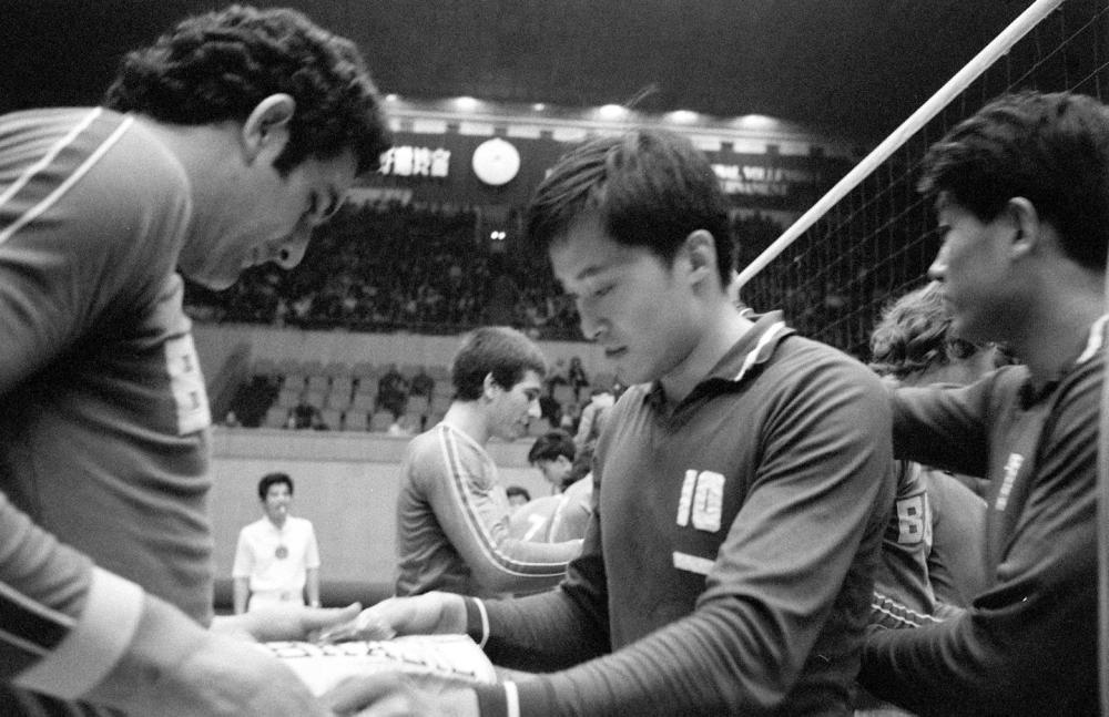 1978年5月18日至25日,北京國(guó)際排球友好邀請(qǐng)賽成功舉行。中國(guó)隊(duì)與巴西隊(duì)運(yùn)動(dòng)員在比賽前互贈(zèng)禮物。