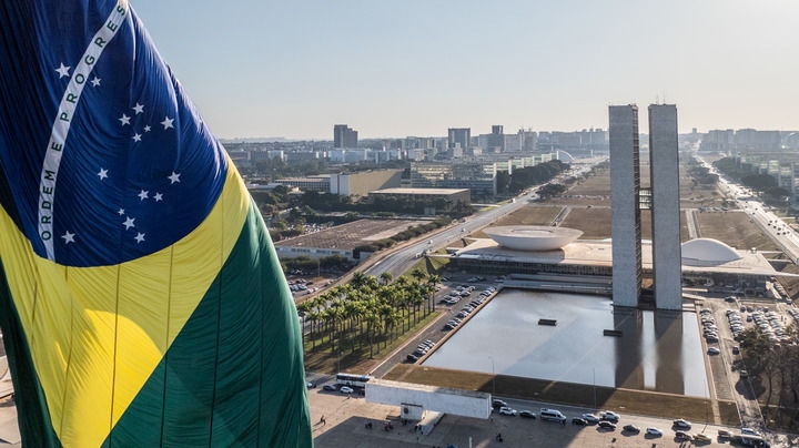 這是2024年7月16日在巴西首都巴西利亞拍攝的國會大廈(無人機照片)。新華社記者 王天聰 攝
