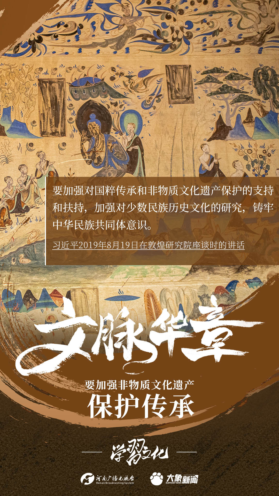 非物質(zhì)文化遺產(chǎn)是中華優(yōu)秀傳統(tǒng)文化的重要組成部分,是中華文明綿延傳承的生動(dòng)見證,是我國(guó)各族人民寶貴的精神財(cái)富。習(xí)近平總書記十分關(guān)心非物質(zhì)文化遺產(chǎn)的保護(hù)傳承,多次強(qiáng)調(diào)“要扎實(shí)做好非物質(zhì)文化遺產(chǎn)的系統(tǒng)性保護(hù)”“培養(yǎng)好傳承人”等。大象新聞為您梳理,邀您一起學(xué)習(xí)、領(lǐng)悟、踐行。