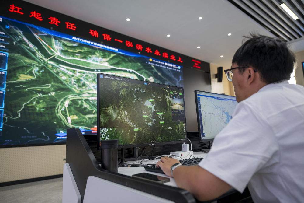 同時(shí),為了“不讓一滴污水進(jìn)入河庫(kù)”,“空、天、地、水”守水防線全方位在丹江口庫(kù)區(qū)筑牢。通過(guò)高空衛(wèi)星、無(wú)人機(jī)、環(huán)庫(kù)岸線攝像頭、地下雨污管網(wǎng)內(nèi)的監(jiān)測(cè)儀等設(shè)備,工作人員能實(shí)時(shí)監(jiān)測(cè)庫(kù)岸線安全、非法垂釣、危化品運(yùn)輸?shù)惹闆r,重點(diǎn)排污企業(yè)、污水處理廠情況也一目了然。