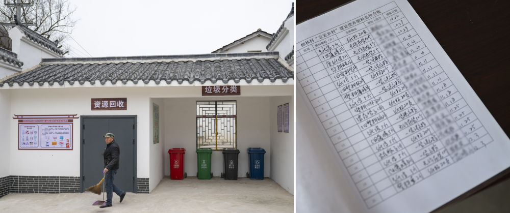2024年12月8日,在丹江口市石鼓鎮(zhèn)柳林村拍攝的垃圾分類處和塑料資源回收點(diǎn)。村民可將新舊塑料制品帶到此處換成環(huán)保生活日用品。