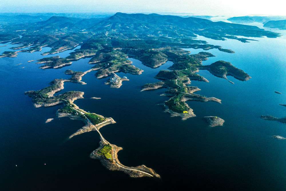 2024年11月29日在南陽(yáng)市淅川縣拍攝的丹江口水庫(kù)庫(kù)區(qū)景色(無(wú)人機(jī)照片)。
