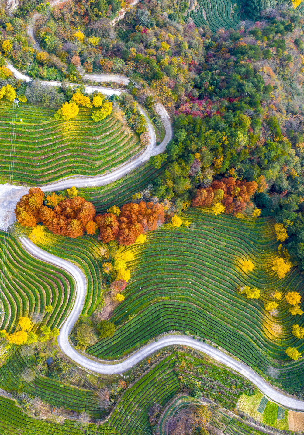 2023年11月24日在十堰市武當(dāng)山旅游經(jīng)濟(jì)特區(qū)八仙觀村拍攝的茶園(無(wú)人機(jī)照片)。