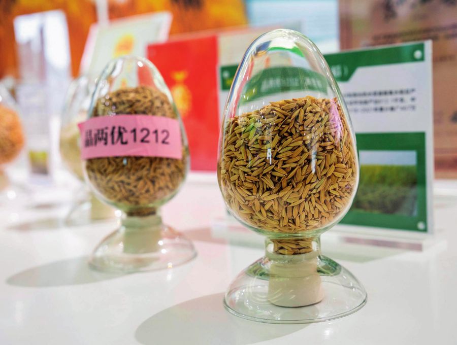 長(zhǎng)沙岳麓山種業(yè)創(chuàng)新中心展示的稻種樣本(2024年11月23日攝)。陳思汗攝/本刊