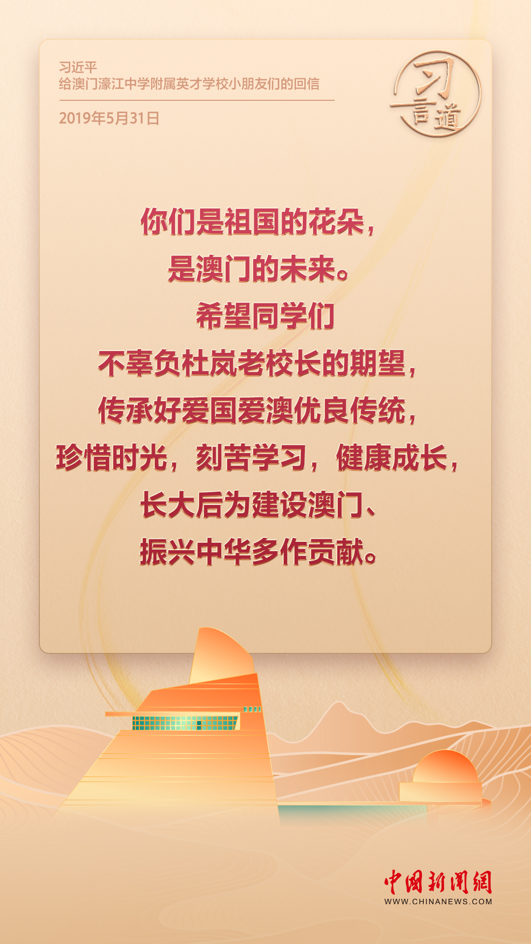 2024年是澳門回歸祖國25周年。多年來,習近平主席始終關注澳門經濟社會發(fā)展、百姓福祉,寄語“澳門的發(fā)展厚積薄發(fā)、未來可期”。