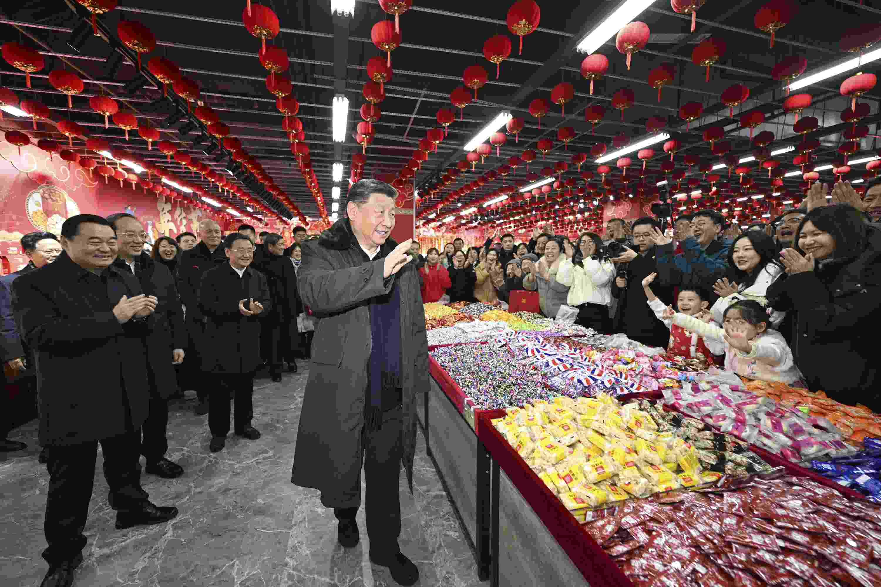 2020年1月20日,農(nóng)歷臘月二十三,云南昆明,習(xí)近平總書記來到當(dāng)?shù)匦麓嘿徫锊┯[會(huì)年貨街,了解春節(jié)前市場(chǎng)供應(yīng)情況。他表示,從過去物資稀缺到今天物產(chǎn)豐富,我們國家發(fā)生了翻天覆地的變化,人民生活連年改善?!安嘶@子”“米袋子”“果盤子”,都是事關(guān)民生的大事。有關(guān)部門要做好工作,確保節(jié)日期間市場(chǎng)供應(yīng)充裕,質(zhì)量安全可靠,讓群眾過一個(gè)安定祥和的春節(jié)。
