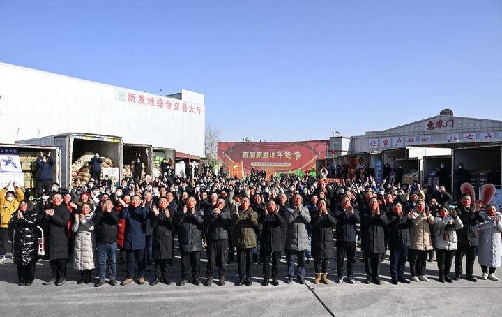 2023年1月18日,北京新發(fā)地農(nóng)產(chǎn)品批發(fā)市場(chǎng)留守的商戶和采購(gòu)年貨的群眾同習(xí)近平總書記視頻連線。
