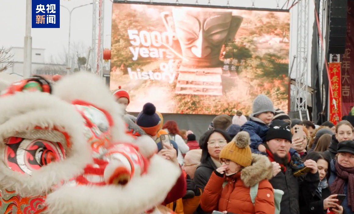 △中央廣播電視總臺蛇年春晚宣傳片在匈牙利吸引大量游客駐足觀看,在喜氣洋洋的氣氛和獨特魅力的中華文化中感受中國春節(jié)的熱烈氛圍。