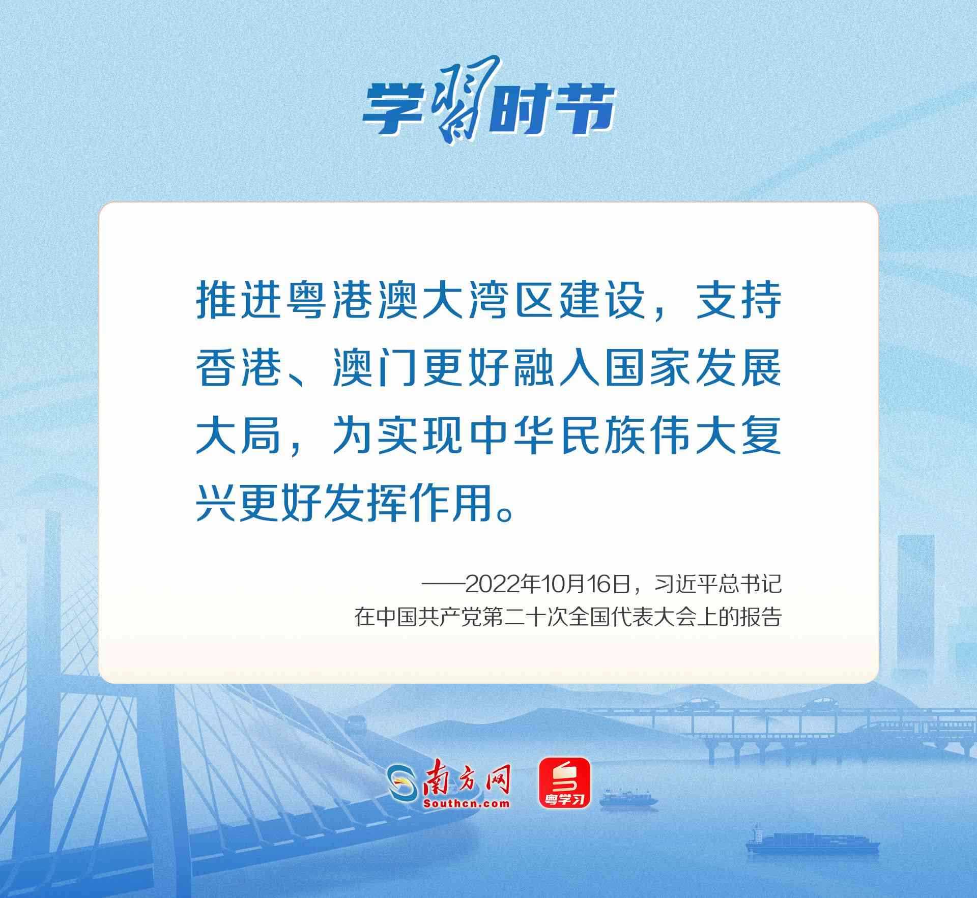 大灣區(qū),是大機遇、大文章,更是大未來。站在《粵港澳大灣區(qū)發(fā)展規(guī)劃綱要》發(fā)布6周年的新起點,粵港澳大灣區(qū)將沿著習(xí)近平總書記指明的方向,全力打造新發(fā)展格局的戰(zhàn)略支點、高質(zhì)量發(fā)展的示范地、中國式現(xiàn)代化的引領(lǐng)地。