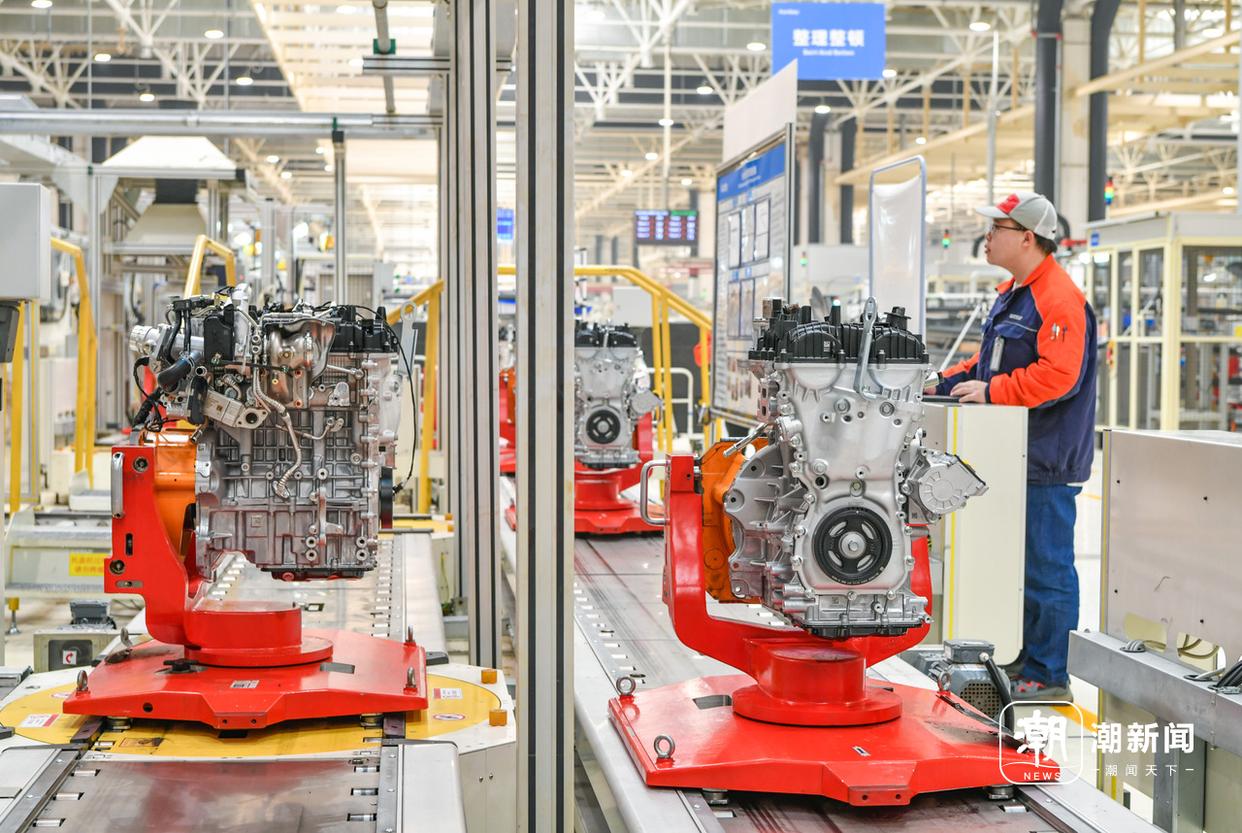 義烏吉利發(fā)動(dòng)機(jī)工廠的生產(chǎn)車間內(nèi),技術(shù)工人在智能化裝配流水線上趕制油電混動(dòng)汽車發(fā)動(dòng)機(jī)的生產(chǎn)訂單。記者 金思成 通訊員 時(shí)寬兵 攝