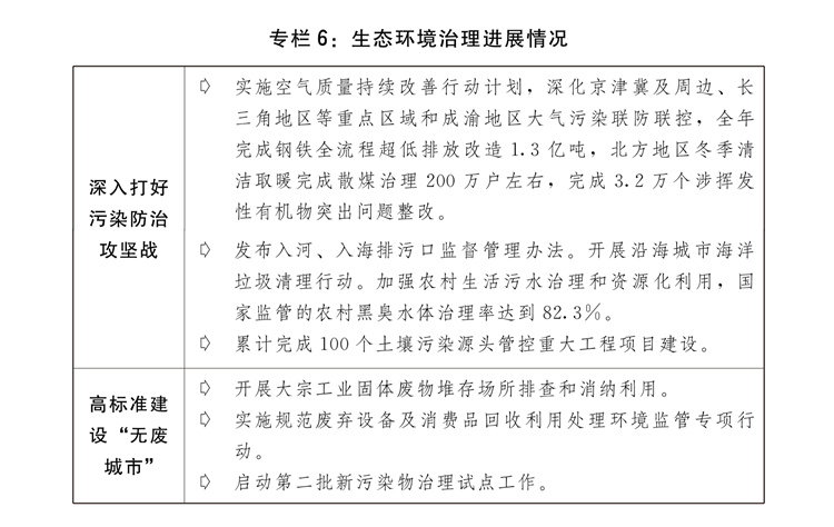 (九)堅定不移推進(jìn)生態(tài)文明建設(shè),全面綠色轉(zhuǎn)型取得積極進(jìn)展。出臺加快經(jīng)濟(jì)社會發(fā)展全面綠色轉(zhuǎn)型的意見,持續(xù)深入打好污染防治攻堅戰(zhàn),積極穩(wěn)妥推進(jìn)碳達(dá)峰碳中和,大力實施全面節(jié)約戰(zhàn)略,美麗中國建設(shè)成效明顯。