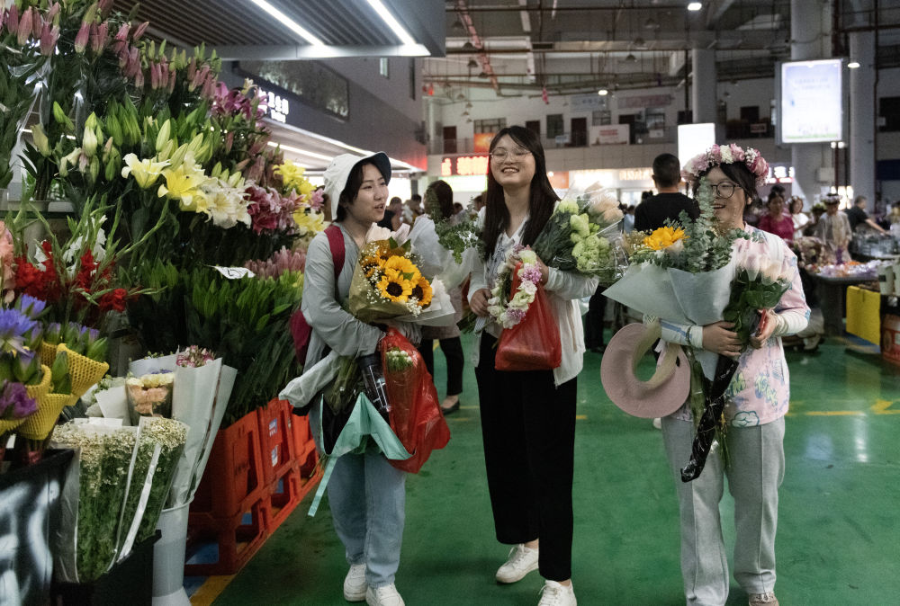 2024年11月25日,消費(fèi)者在云南省昆明市斗南花卉市場(chǎng)內(nèi)選購(gòu)花卉。