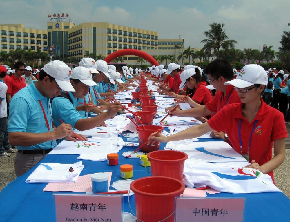2010年8月27日,中越青年在廣西北海市海濱公園參加“用友誼共繪美好未來”中越千名青年大型彩繪活動(dòng)。