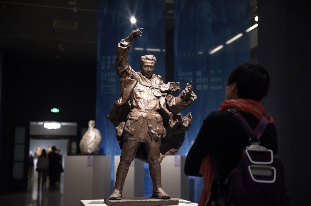 2018年4月1日,參觀者在北京的中國美術館參觀雕塑作品“冼星海”。新華社記者 魯鵬攝