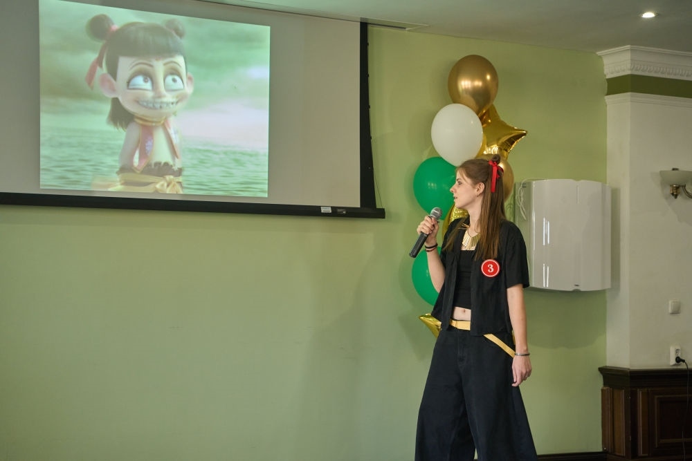 2025年4月10日,第24屆“漢語橋”世界大學生中文比賽俄羅斯賽區(qū)預選賽10日在符拉迪沃斯托克舉行。這是選手為電影《哪吒2》進行配音表演。