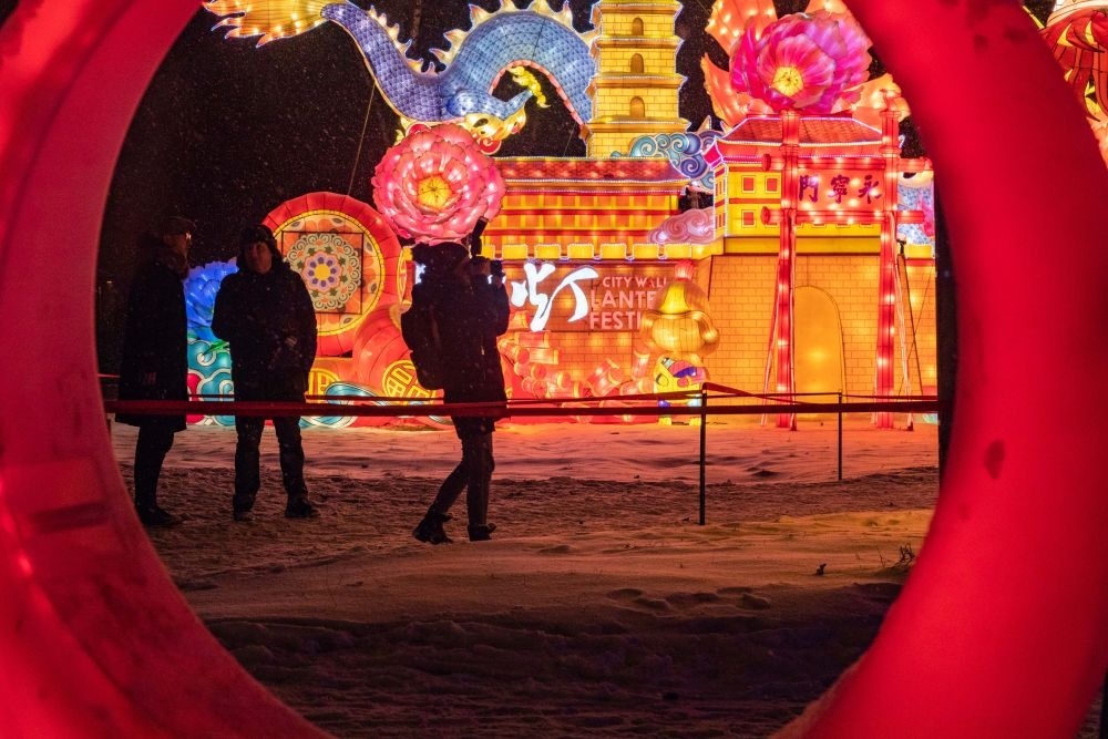 2019年12月4日,在俄羅斯首都莫斯科的中國彩燈節(jié)上,觀眾拍攝來自中國四川省自貢市的彩燈作品。