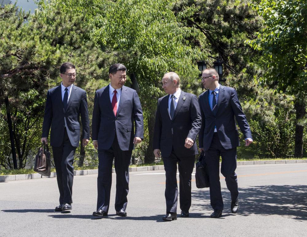 2017年5月14日,國家主席習近平在北京釣魚臺國賓館會見來華出席“一帶一路”國際合作高峰論壇的俄羅斯總統(tǒng)普京。會見后,習近平同普京在釣魚臺國賓館散步。