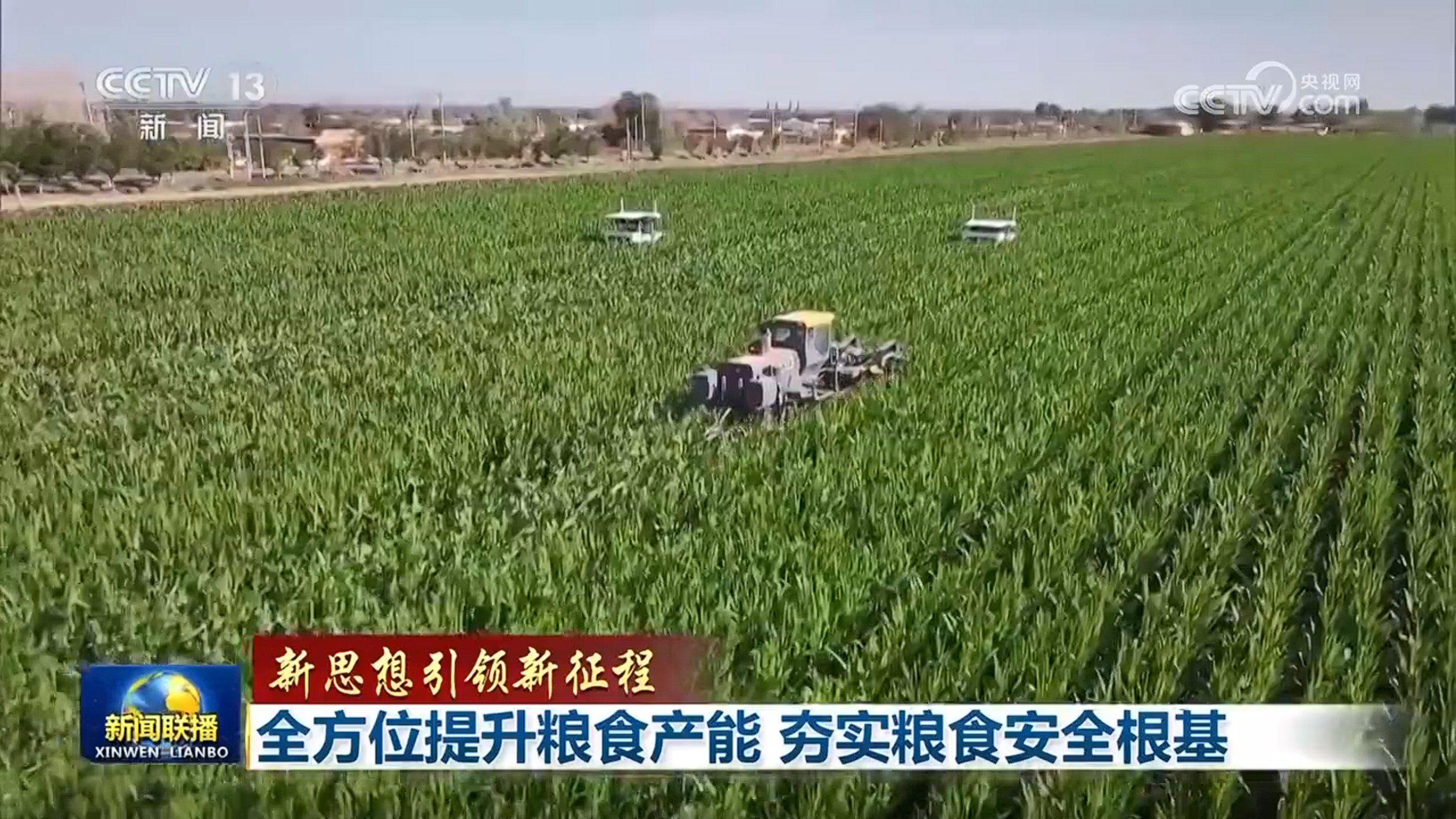 央視網(wǎng)消息(新聞聯(lián)播):糧食安全是“國(guó)之大者”。習(xí)近平總書記強(qiáng)調(diào),要嚴(yán)守耕地紅線,高質(zhì)量推進(jìn)高標(biāo)準(zhǔn)農(nóng)田建設(shè),強(qiáng)化農(nóng)業(yè)科技和裝備支撐,確保糧食和重要農(nóng)產(chǎn)品穩(wěn)產(chǎn)保供。今年以來(lái),各糧食主產(chǎn)區(qū)緊盯實(shí)現(xiàn)糧食產(chǎn)量1.4萬(wàn)億斤左右的目標(biāo),抓實(shí)抓細(xì)大面積單產(chǎn)提升措施,全方位夯實(shí)大國(guó)糧倉(cāng)根基,端穩(wěn)端牢中國(guó)人自己的飯碗。