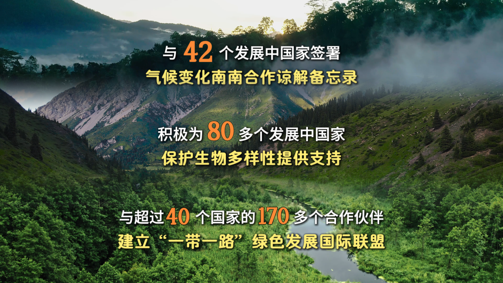 與42個(gè)發(fā)展中國(guó)家簽署氣候變化南南合作諒解備忘錄,在南南合作框架下積極為80多個(gè)發(fā)展中國(guó)家保護(hù)生物多樣性提供支持,與超過40個(gè)國(guó)家的170多個(gè)合作伙伴建立“一帶一路”綠色發(fā)展國(guó)際聯(lián)盟……中國(guó)智慧、中國(guó)技術(shù)、中國(guó)行動(dòng),正為推動(dòng)世界綠色發(fā)展提供源源不斷的重要助力。