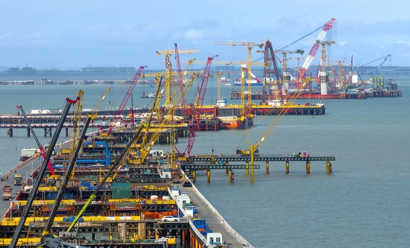 這是廈金大橋(廈門段)海上橋梁大規(guī)模裝配化施工現(xiàn)場(chǎng)(6月13日攝)。