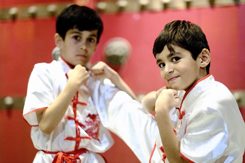 2024年6月11日,在塔吉克斯坦首都杜尚別,愛好中國(guó)武術(shù)的當(dāng)?shù)貎和瘏⒓铀怂固姑褡宕髮W(xué)孔子學(xué)院的武術(shù)表演排練。新華社記者 鄭開君 攝