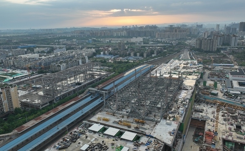 成都站位于四川省成都市,是新中國第一條自主建設的鐵路——成渝鐵路的起始站。為滿足成渝中線高鐵建設、市域鐵路公交化改造建設等需要,車站進行了拆除擴建。車站建設采取“分步施工、南北交替”方案,將施工區(qū)域劃分為南北兩個作業(yè)面,實現了鐵路正常運輸與工程建設同步推進,完成銜接成渝、達成、寶成等多條鐵路線路的撥接與改造。