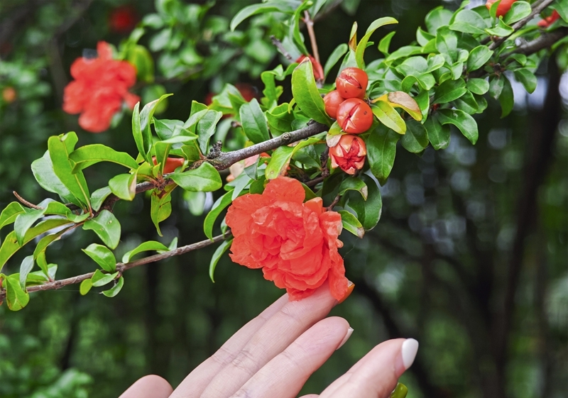 農(nóng)歷五月又稱“榴月”,是石榴花盛開(kāi)的時(shí)節(jié)。石榴花火紅鮮艷,花間點(diǎn)綴著初生的果實(shí),一派生機(jī)勃勃的景象,讓許多文人墨客留下詠?lái)炇窕ǖ脑?shī)篇。唐代詩(shī)人韓愈如此描繪:“五月榴花照眼明,枝間時(shí)見(jiàn)子初成?!?/span>