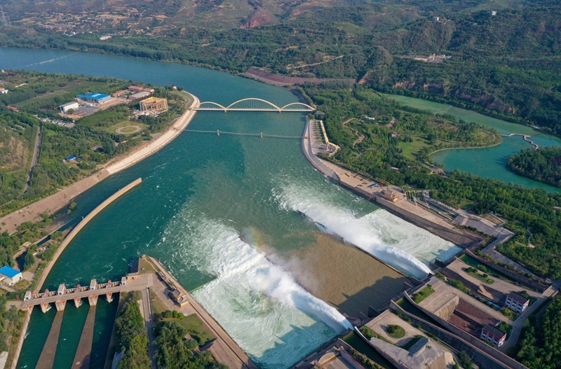這是6月23日在河南濟(jì)源拍攝的小浪底水利樞紐工程調(diào)水調(diào)沙現(xiàn)場(chǎng)(無人機(jī)照片)。