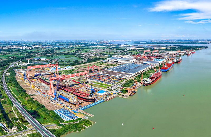 6月28日拍攝的位于江蘇省江都經(jīng)濟開發(fā)區(qū)的揚州中遠海運重工有限公司生產(chǎn)廠區(qū)(無人機照片)。
