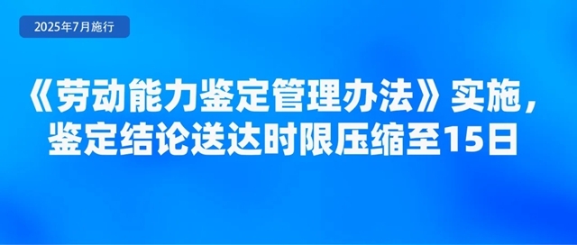 人力資源社會(huì)保障部、國(guó)家衛(wèi)生健康委聯(lián)合印發(fā)的《勞動(dòng)能力鑒定管理辦法》,自2025年7月1日起施行。《辦法》明確,工傷職工和因病或非因工致殘申請(qǐng)領(lǐng)取病殘津貼人員申請(qǐng)勞動(dòng)能力鑒定適用本辦法。勞動(dòng)能力鑒定分為初次鑒定和再次鑒定,對(duì)初次鑒定不服可以申請(qǐng)?jiān)俅舞b定,再次鑒定為最終結(jié)論?!掇k法》強(qiáng)調(diào),要加強(qiáng)便民服務(wù),減少不必要材料,信息共享能夠獲取的申請(qǐng)材料不得要求申請(qǐng)人重復(fù)提交;壓縮鑒定時(shí)限,將結(jié)論送達(dá)時(shí)限從20日壓縮至15日;加強(qiáng)無(wú)障礙環(huán)境建設(shè),完善無(wú)障礙服務(wù)設(shè)施設(shè)備。