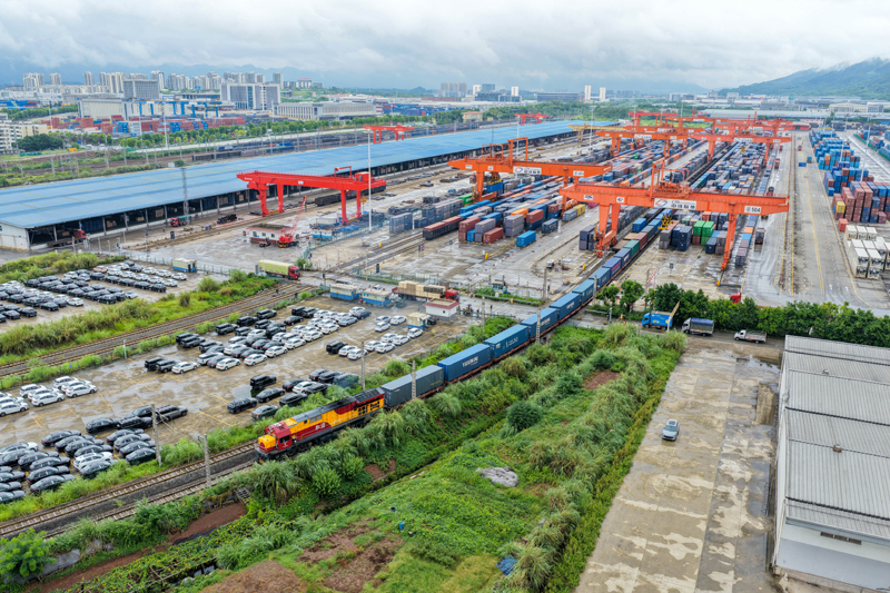 9月13日,滿載汽車零配件、筆記本電腦等貨物的中亞班列在重慶團(tuán)結(jié)村中心站發(fā)車(無(wú)人機(jī)照片)。