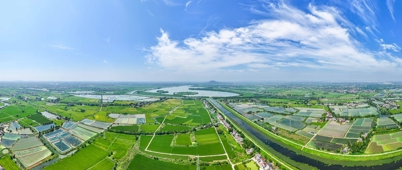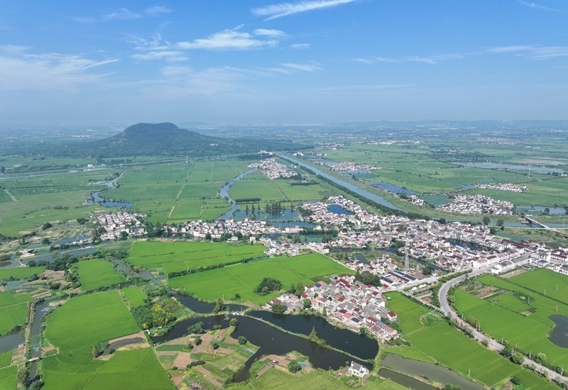 9月15日拍攝的句容赤山湖及周邊農(nóng)田(無人機(jī)全景照片)。
