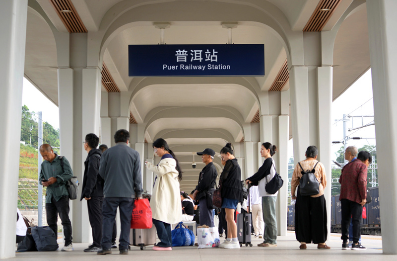 9月20日,旅客在中老鐵路普洱站乘車。
