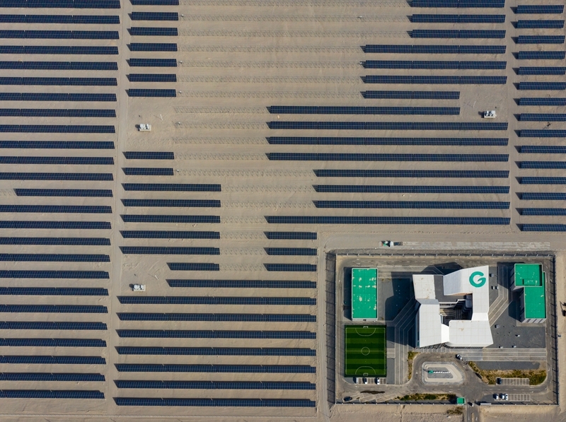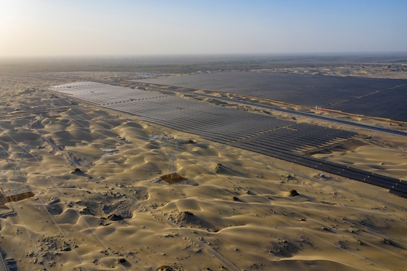昔日的戈壁荒漠,如今由太陽能光伏板匯聚成“藍(lán)色海洋”,由風(fēng)力發(fā)電機(jī)組成“白色森林”,正孕育著無限“風(fēng)光”。