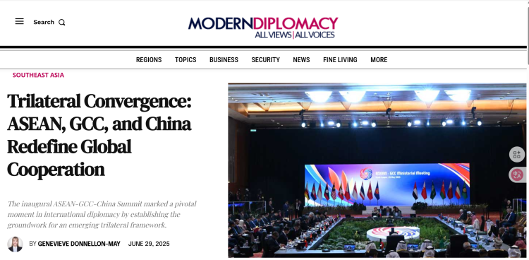 6月29日,歐洲《現(xiàn)代外交》網(wǎng)站刊發(fā)評(píng)論文章《三方協(xié)同:東盟、海合會(huì)與中國重新定義全球合作》。文章從不久前圓滿閉幕的首屆東盟—中國—海合會(huì)峰會(huì)出發(fā),指出東盟、海合會(huì)與中國之間的三方合作對(duì)推動(dòng)世界多極化、促進(jìn)全球南方國家發(fā)展具有重要意義,中國作為負(fù)責(zé)任大國在全球治理中發(fā)揮了關(guān)鍵領(lǐng)導(dǎo)作用。