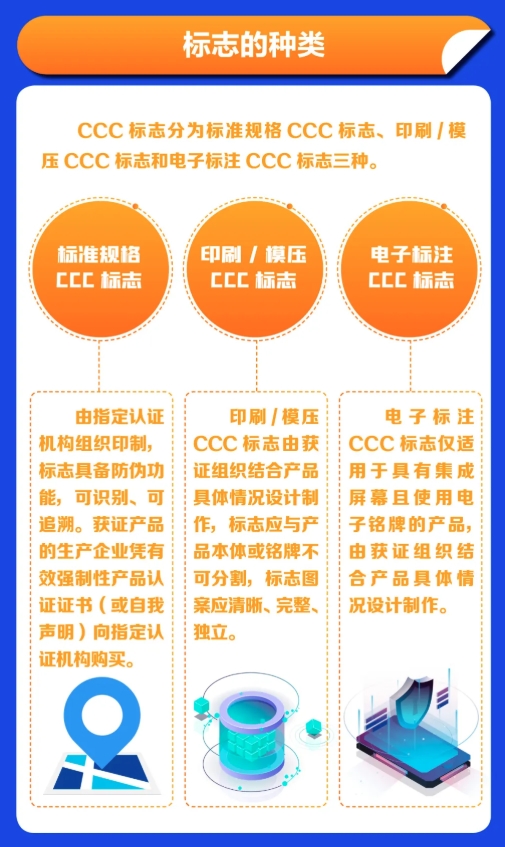 這份解讀明確,CCC標志分為標準規(guī)格CCC標志、印刷/模壓CCC標志和電子標注CCC標志三種。其中的標準規(guī)格CCC標志由指定認證機構(gòu)組織印制,標志具備防偽功能,可識別、可追溯。獲證產(chǎn)品的生產(chǎn)企業(yè)憑有效強制性產(chǎn)品認證證書(或自我聲明)向指定認證機構(gòu)購買。