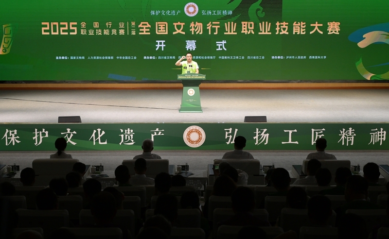 7月5日,2025年全國行業(yè)職業(yè)技能競賽——第二屆全國文物行業(yè)職業(yè)技能大賽在四川瀘州舉行開幕式。本屆大賽以“保護文化遺產(chǎn) 弘揚工匠精神”為主題,內(nèi)容涵蓋金屬、陶瓷、紙張書畫、木作、泥瓦作文物修復師及考古探掘工6個競賽項目。