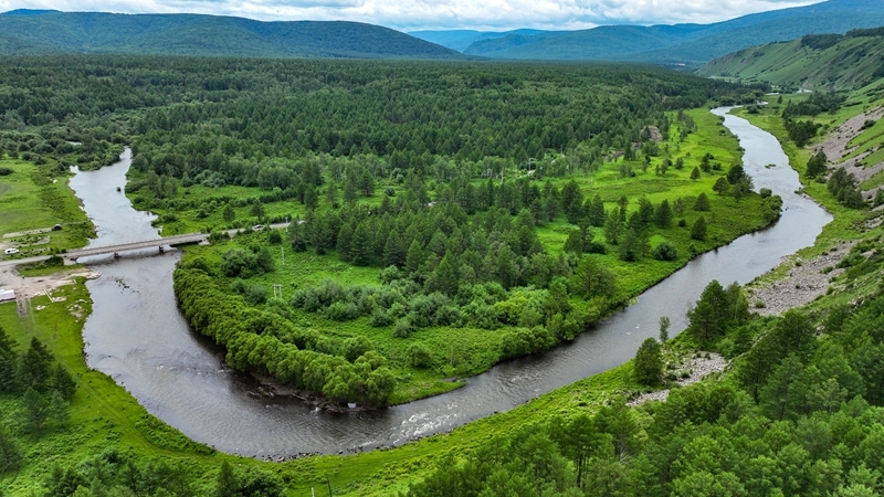 7月5日拍攝的流經(jīng)內(nèi)蒙古阿爾山國家森林公園的哈拉哈河(無人機(jī)照片)。