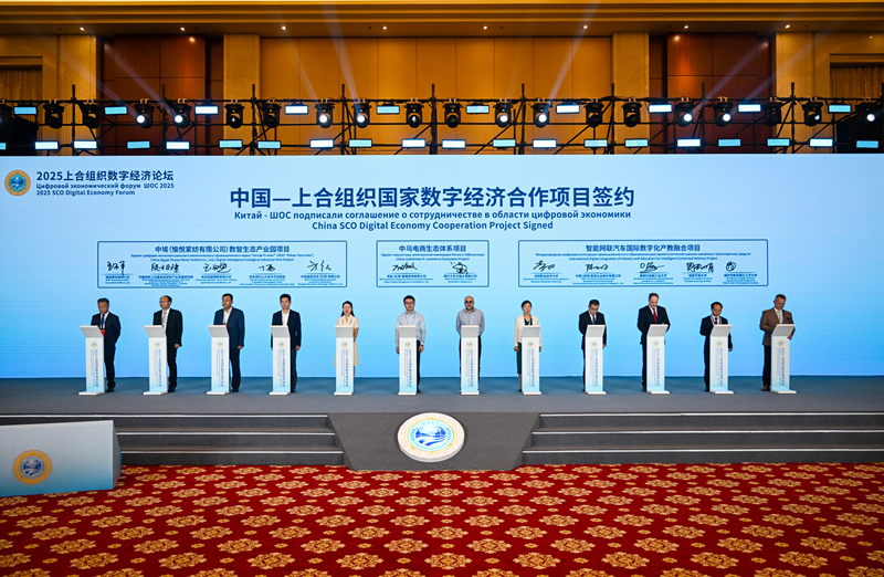 7月11日在論壇現(xiàn)場拍攝的中國—上合組織國家數(shù)字經(jīng)濟合作項目簽約儀式。