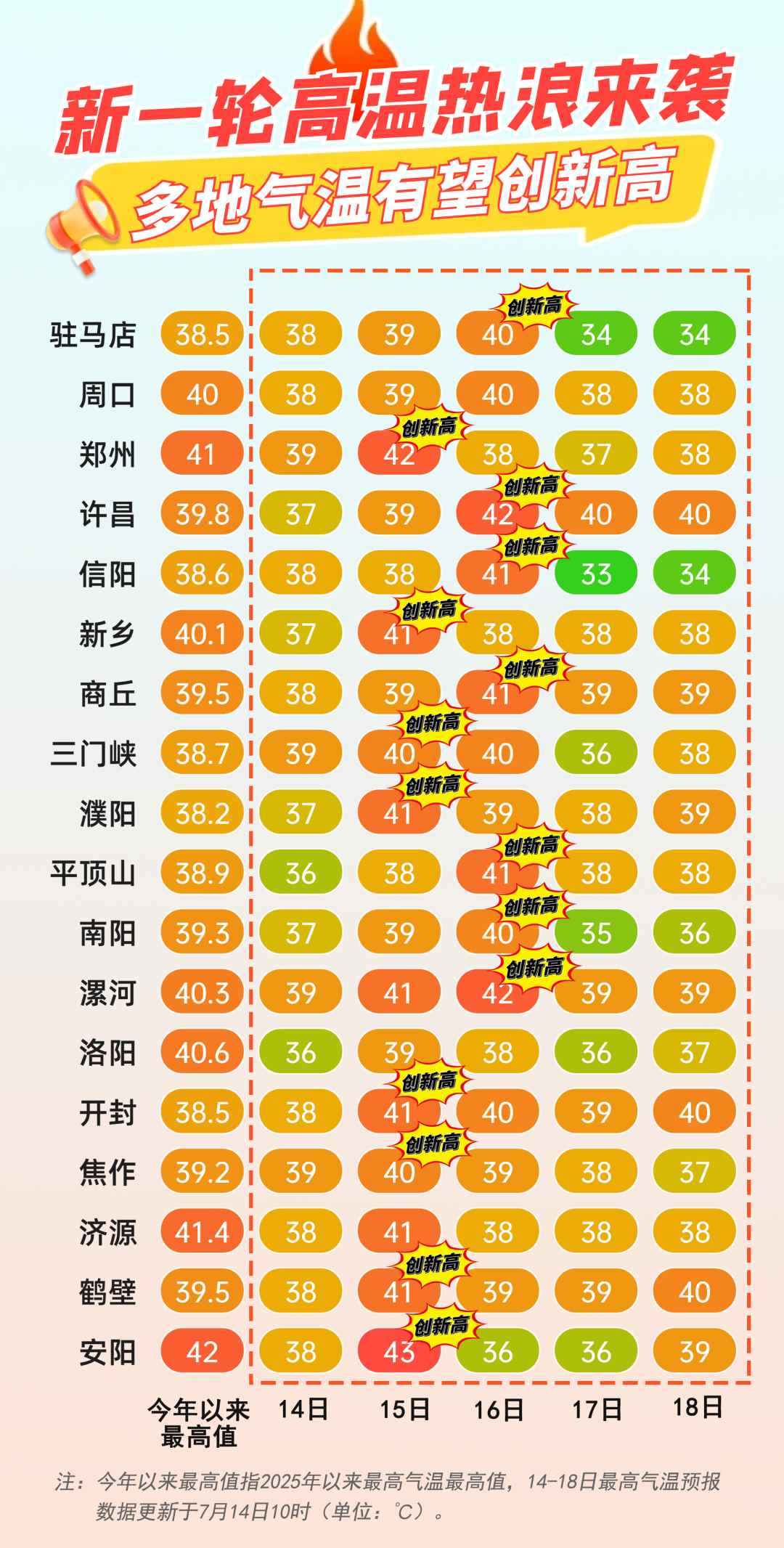昨日(14日),河南多地氣溫沖破40℃,省、市兩級氣象臺相繼拉響最高級別的高溫紅色預警。據省氣象臺數(shù)據,當天全省共發(fā)布128條高溫預警,71個縣市氣溫高于40℃。