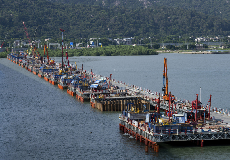 這是漳江灣跨海特大橋主棧橋(7月16日攝)。