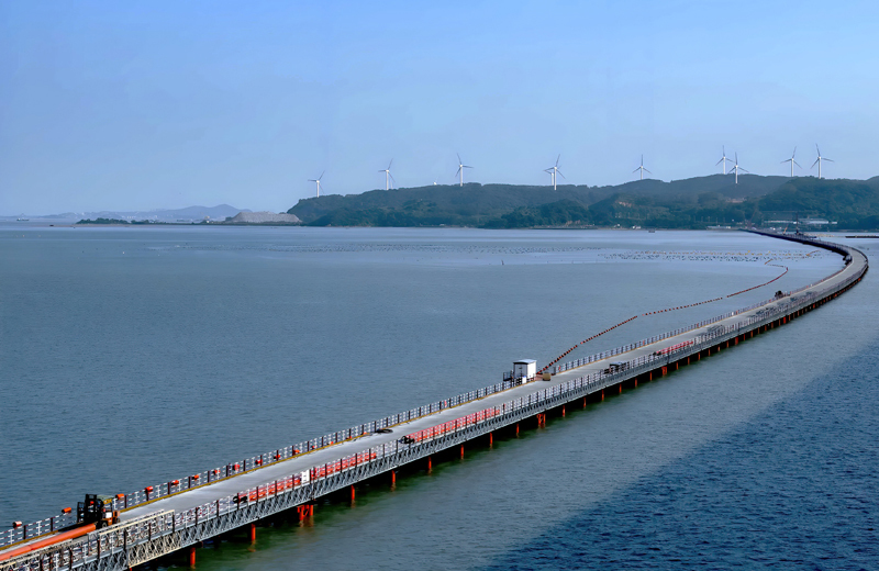 7月18日,新建漳汕高鐵全線控制性工程漳江灣跨海特大橋主棧橋完工,為后續(xù)海上各工作面施工奠定基礎(chǔ)。漳汕高鐵漳江灣跨海特大橋橋梁全長(zhǎng)5.8公里,海域部分橋梁長(zhǎng)5公里。目前,大橋主體結(jié)構(gòu)施工正在有序推進(jìn)。