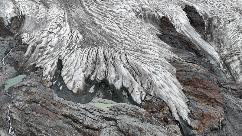 7月19日拍攝的薩普冰川冰舌末端(無人機(jī)照片)。
