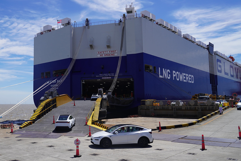 上海自貿(mào)試驗區(qū)臨港新片區(qū)管委會綜保處主任科員袁乾鵬介紹,隨著從“船等車”變?yōu)椤败嚨却?,今年上半年,上海南港外貿(mào)進出口車輛達29.3萬輛,同比增長32.58%。