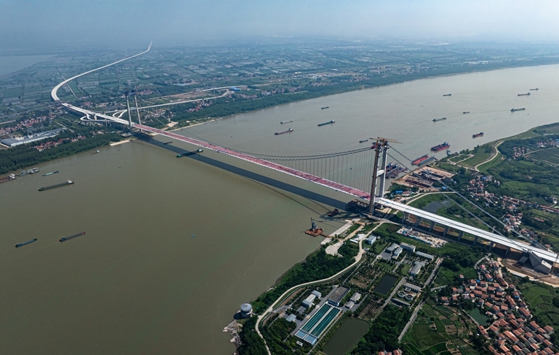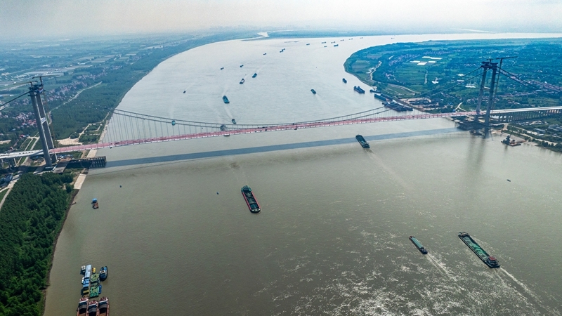 7月26日拍攝的合龍后的雙柳長江大橋(無人機(jī)照片)。